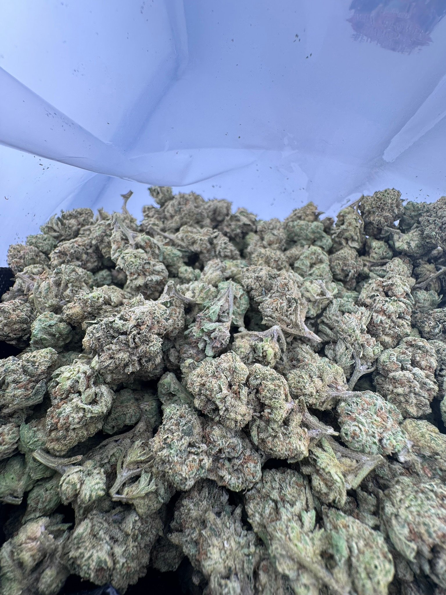 Beautiful long, pepper-shaped mint-green buds adorned with thick orange hairs and a dense coating of sparkling white trichomes dripping with sweet resin.